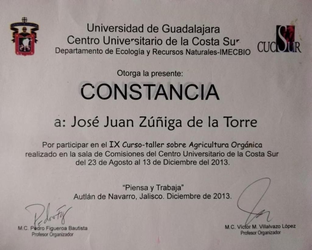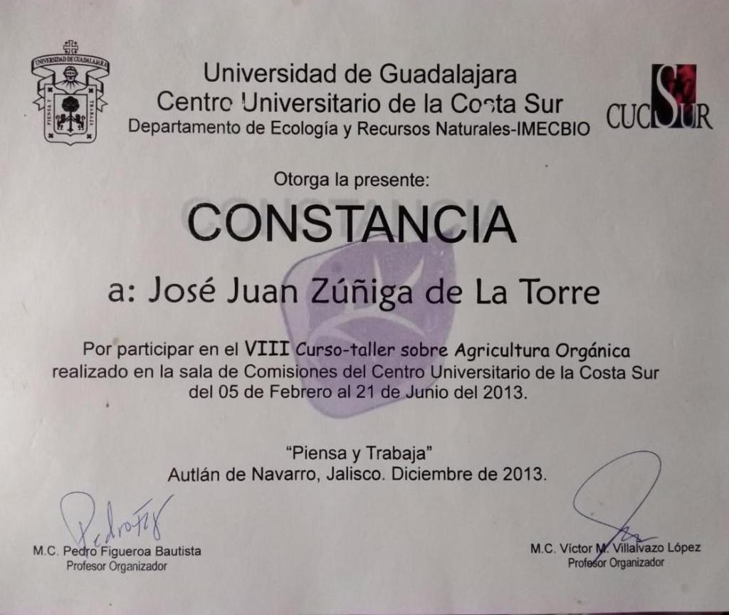 Juan Zuñiga forma parte de la cooperativa de consumo consciente Milpa. Cuenta con una producción orgánica certificada por la CCOF Certification Services, LLC. Esta certificación se rige según las normas establecidas por el programa orgánico nacional. Su producción se encuentra en Dolores Hidalgo, Guanajuato. Brinda una variedad de frijol orgánico.